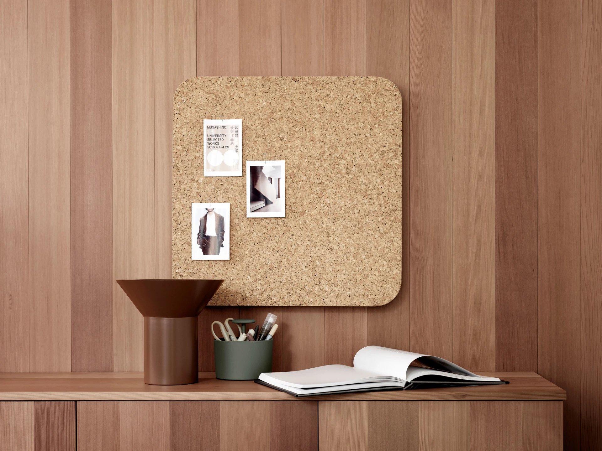 Bloc Cork är en anslagstavla med naturlig korkyta som gör det enkelt att fästa lappar med nålar.