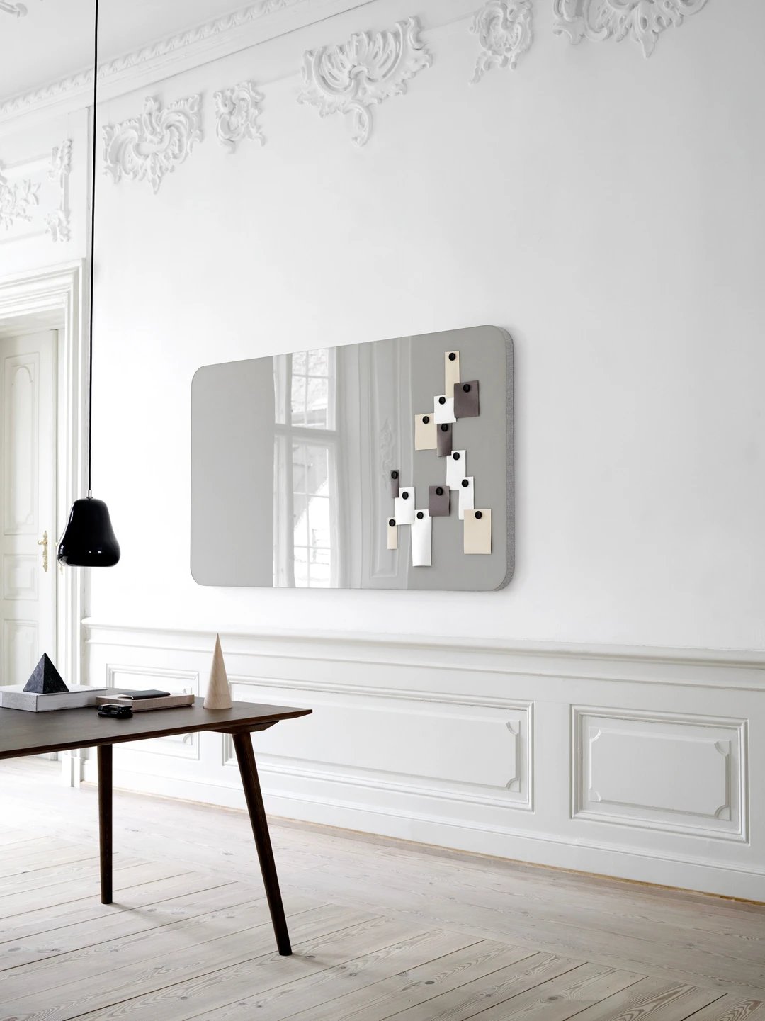 Mood Fabric Wall är en magnetbärande glastavla med tygklädd ram — ett sofistikerat uttryck och ljudabsorbent i ett. Tavlan kombinerar glasets elegans med textilens mjukhet.
